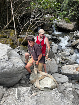 Fortunately, in nearby Arahura, Jasper and I were lucky to meet and receive a very warm welcome from Rory and Willow - the Tauwhares are a local family who are traditional custodians of the stone in this area. The Tauwhare family offered to take us out on an exploration along the Arahura river to look for our own pounamu with their blessing. Peter Jnr is well-known for his incredible eagle eye and effortlessly spotting pounamu hiding amongst ordinary rocks in the waters!