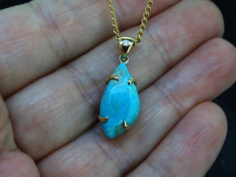 Delicate Rare Cornish Turquoise 18ct Gold and Diamond Pendant